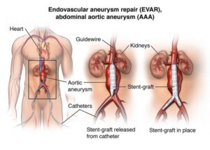 Ενδαγγειακή αντιμετώπιση με κεφαλή κορυφαίας αορτής (EVAR - Endovascular Aneurysm Repair): Αυτή η τεχνική εμπλέκει την τοποθέτηση ενός στεντ μέσω μιας μικρής τομής στο προσθιοκοιλιακό τοίχωμα για την επισκευή του ανευρύσματος.